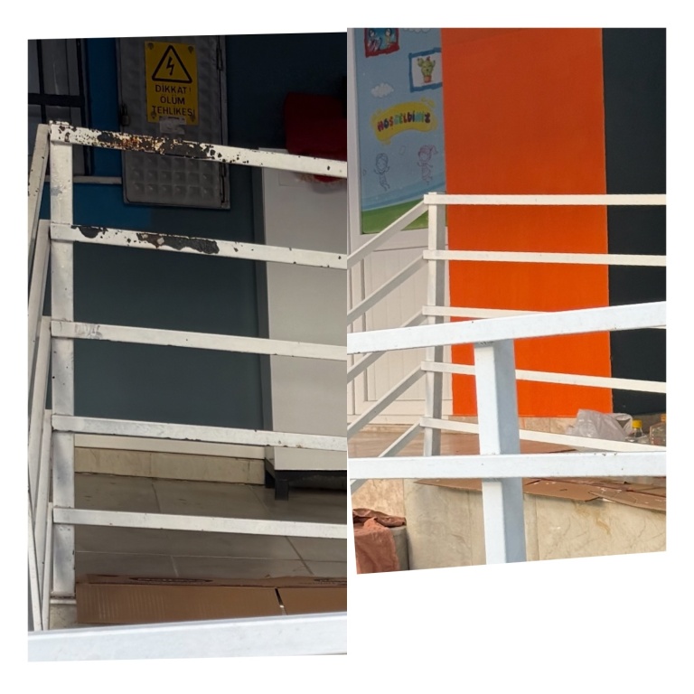 Okulumuzun girişindeki korkuluklar boyandı.